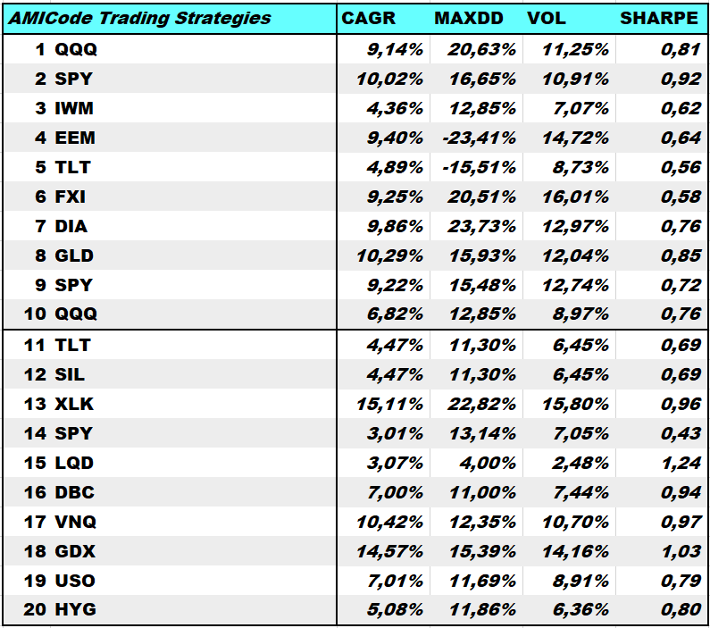 *At the end of this post you can see the statistics of the first 10 AMICODE TRADING STRATEGIES published.