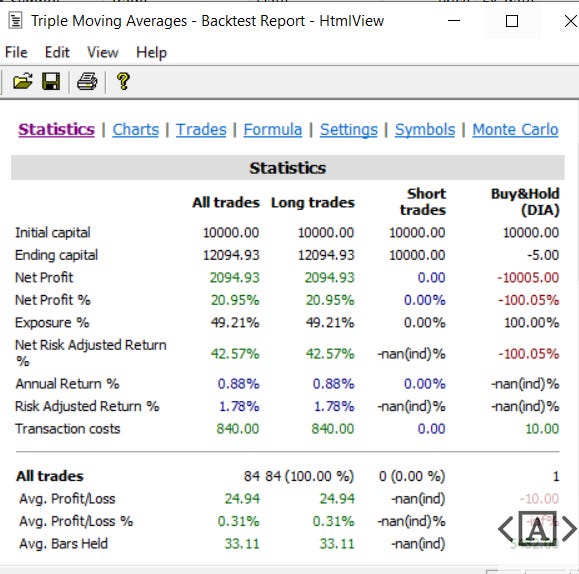 Simple Moving Averages Backtest Code